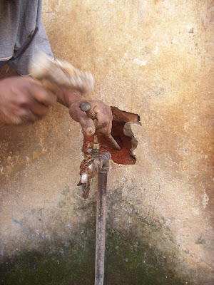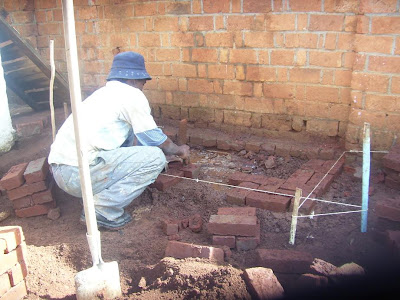 Après la rénovation du bâtiment des douches et wc, la Jirama (société des eaux) nous a conseillé de déplacer le lavoir accolé à la maison. En effet, les tuyaux métalliques sont de très mauvaise qualité et l’oxydation peut avoir des conséquences très néfastes sur la santé. L’eau s’infiltre dans les murs de la maison. Et la taille du puisard est insuffisante pour accueillir l’eau des douches/wc plus l’eau du bassin. Il sera donc reconstruit dans le jardin plus loin avec son propre puisard. Les tuyaux vont être remplacés par des tuyaux en plastiques.